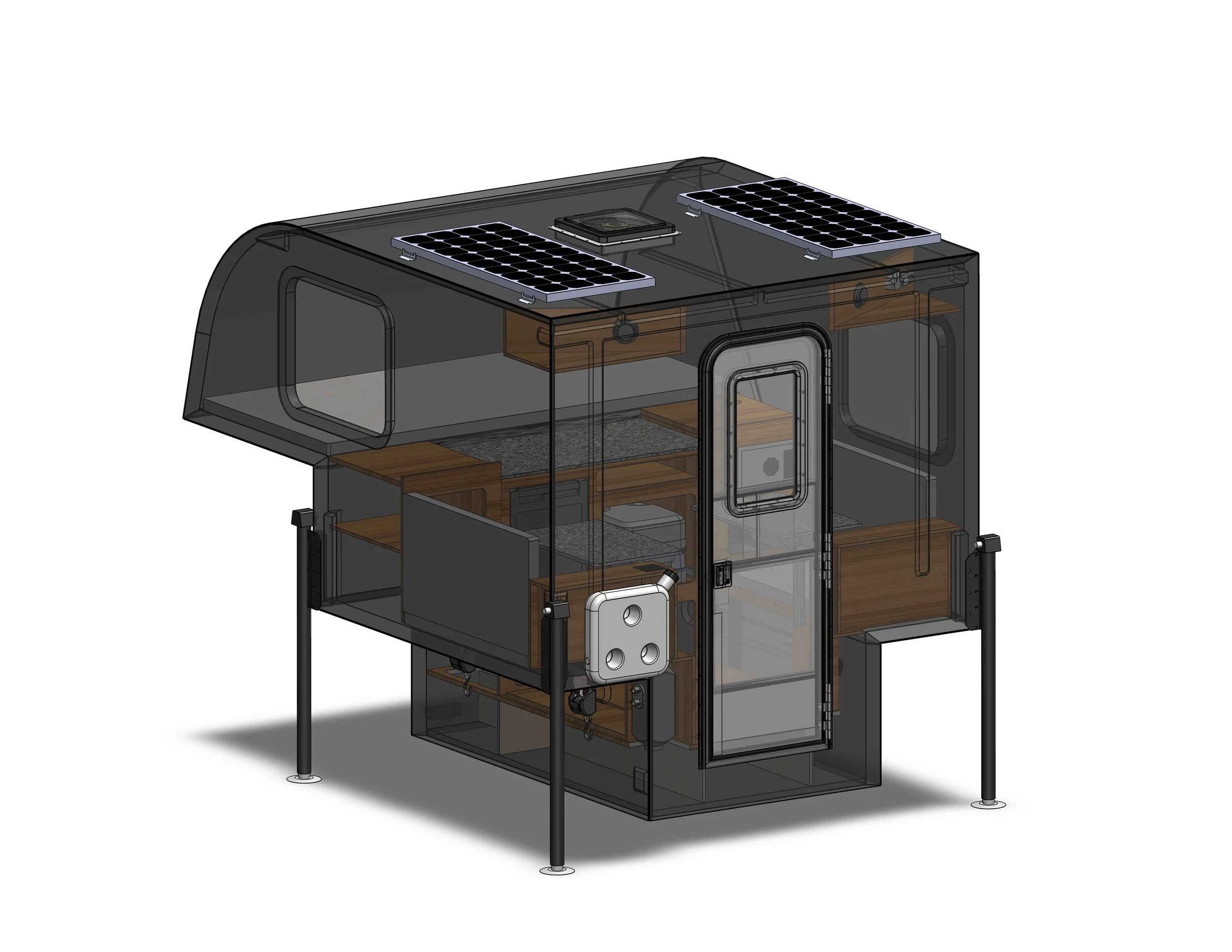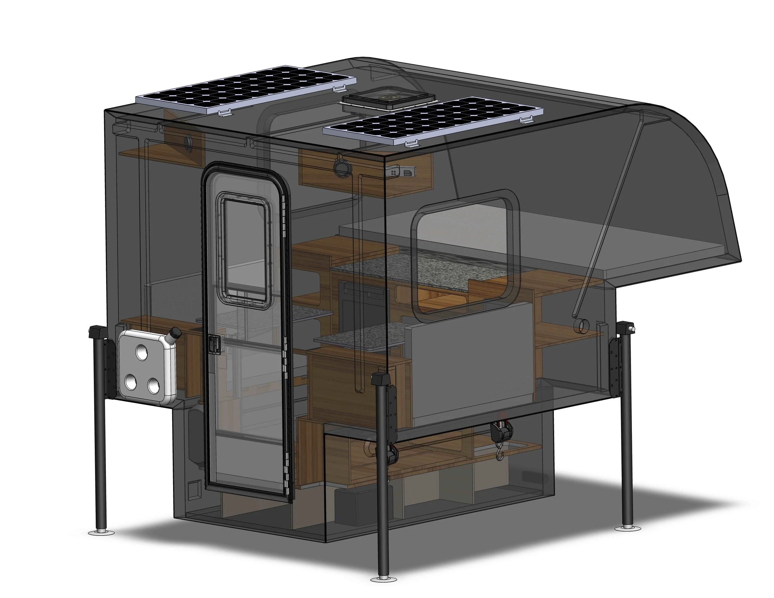 Using our unique fiberglass manufacturing process, we have created a cab-over version of the Arctos Sport. With a convertible Queen bed in the cab-over we can free up the interior for more space, storage and options.